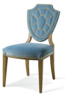 Blue Velvet Side Chair - This duo is upholstered in a show stopping blue velvet, which will elevate your dining room to the next level.. ( 3.0 ) out of 5 stars 2 ratings , based on 2 reviews current price $245.27 $ 245. These dining chairs feature spacious seats with contoured backrests. Black metal frame and legs guarantee quality and durability. Chrome nail head trim outlines the edges of these chairs, adding extra flair to this already stunning set. Light blue velvet universal accent stool with asymmetric gold legs: